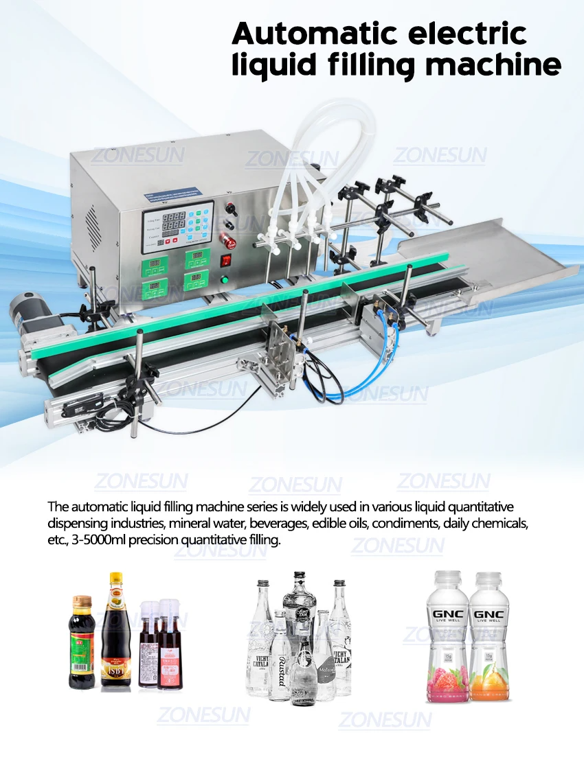 เครื่องจักรนี้สามารถใช้บรรจุของเหลวได้หลากหลายชนิด เช่น น้ำ นม โทนเนอร์ และอื่นๆ อีกมากมาย ใช้กันอย่างแพร่หลายในอุตสาหกรรมอาหาร เครื่องสำอาง และยา