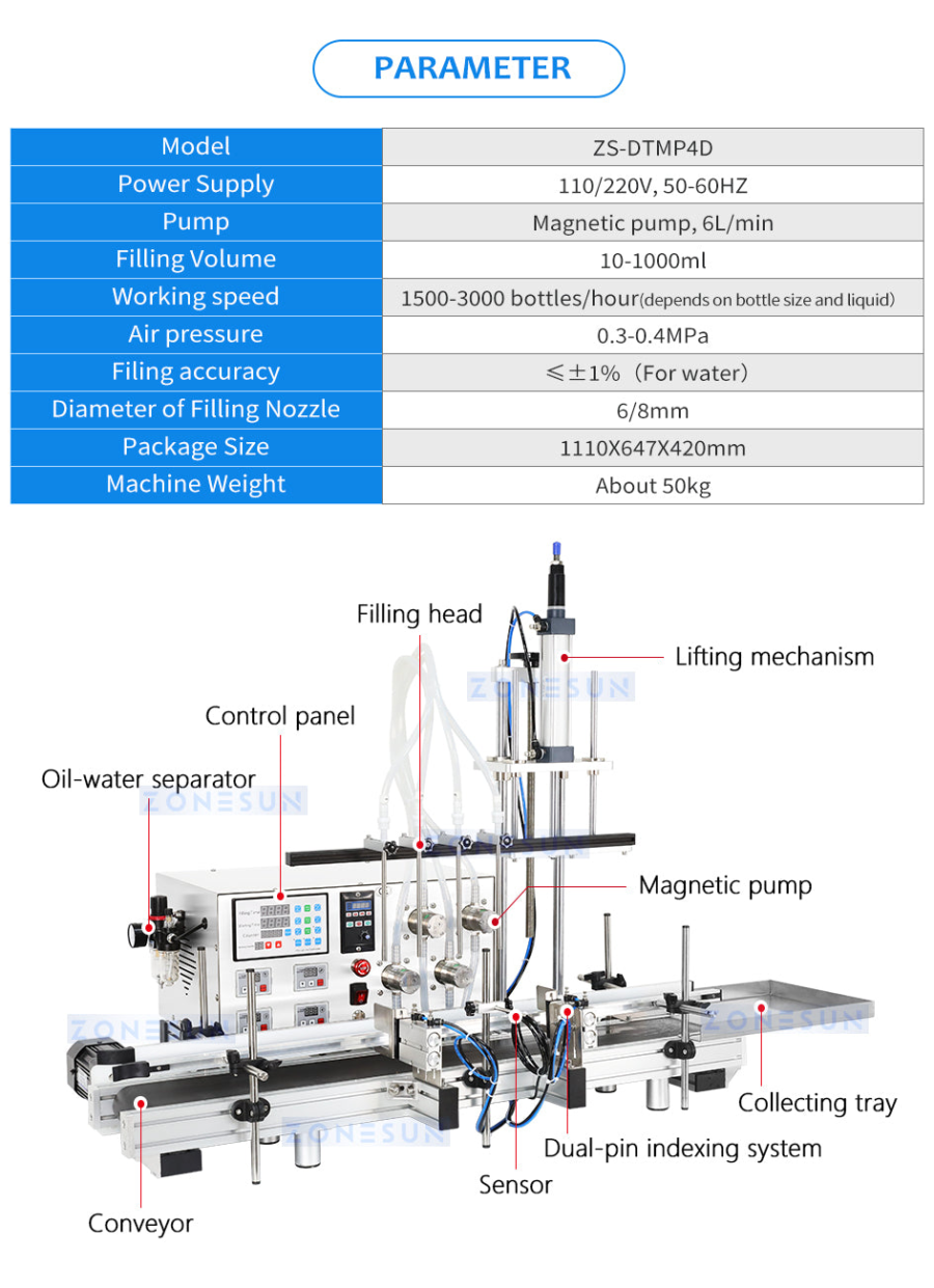 DTMP4D 4หัว เครื่องบรรจุของเหลวอัตโนมัติ ปั๊มแม่เหล็ก