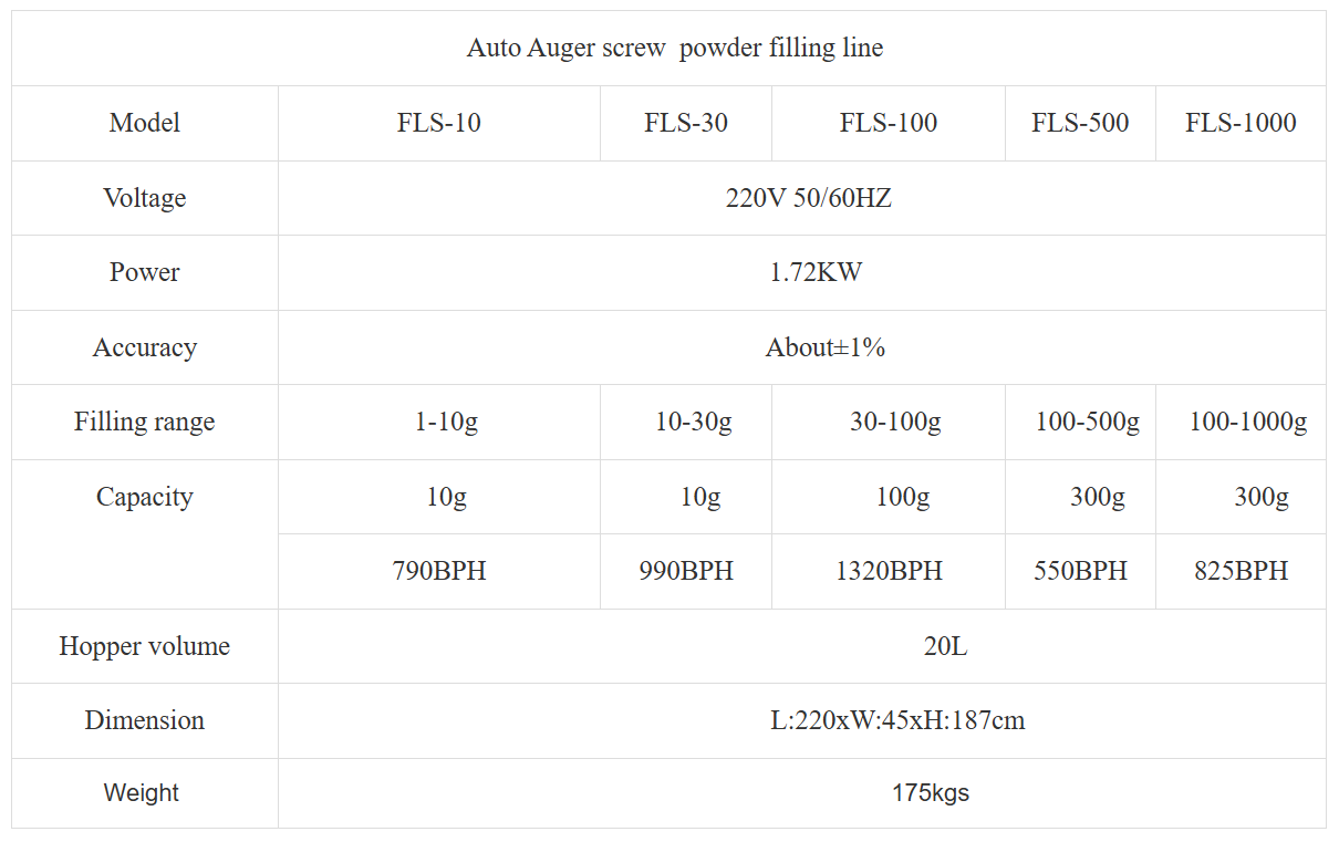 | Filling range | 1-10g | 10-30g | 30-100g | 100-500g | 100-1000g |